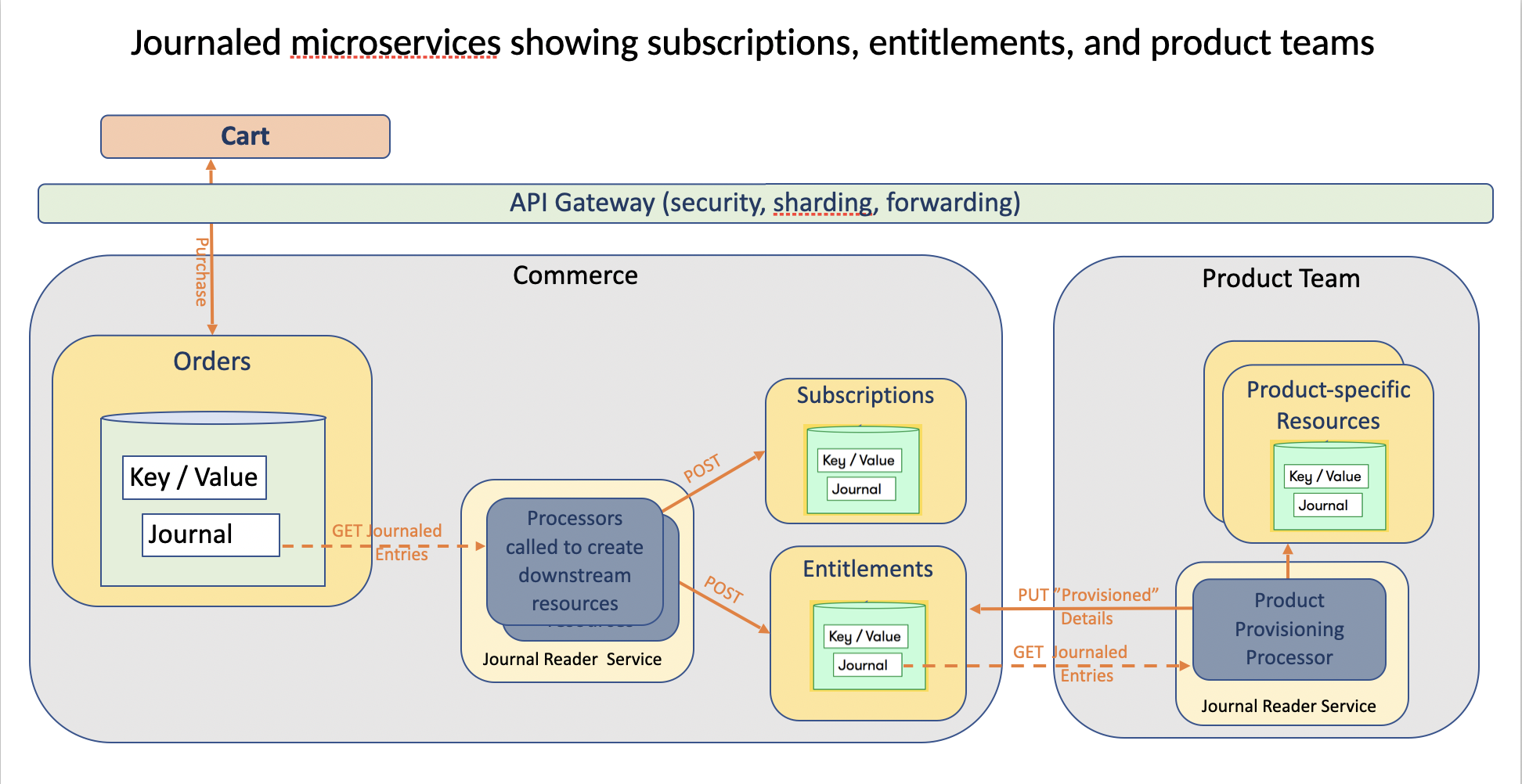 Entitlement Building Processor: For every new order created that has successfully been billed (AKA funded/paid for), this processor will call the Entitlements Service (noun) to POST (ie. create) a new Entitlement that indicates a customer is authorized to use a product. Downstream the products teams have an Entitlements Journal Reader that is pulling new (or updated) entitlements to kick off provisioning for the customer.